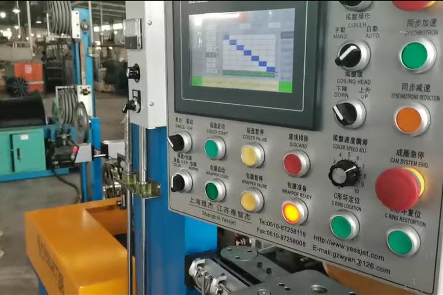 该设备可以自动将电线和电缆卷成线圈,然后使用 PVC 薄膜、PE 薄膜、PP 薄膜或纸带等材料包裹它们。自动错误检测:如果机器发生故障,它将自动识别问题并提醒操作员确保正确的维护和操作。伺服电机电缆布置系统:利用该系统实现整齐的缠绕和最佳的电缆布置。应用范围广泛:非常适合各种电线和电缆的高速自动卷绕和包装,包括 BV、BVR、RVV、UL 电子线和花线。独特的 C 形环设计:采用两个塑料滚轮,可直接用 C 形环包裹线圈。这些功能使机器能够在电线和电缆生产中提供高效率、自动化和节省劳动力,从而提高生产效率和产品质量。