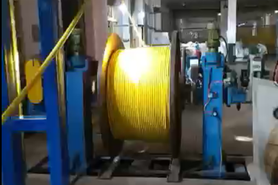 一台机器可连续自动卷绕电缆。
